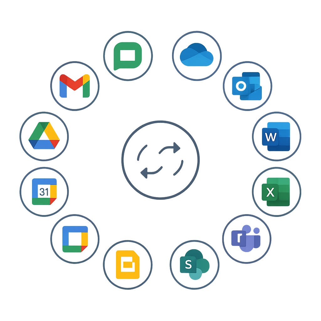 Les outils collaboratifs rassemblent les applications qui facilitent le travail en équipe : messagerie, calendriers partagés, gestion des tâches, visioconférence, stockage/partage de fichiers et co-édition de documents (Microsoft 365, Google Workspace). Simples et efficaces, ils permettent de communiquer, planifier et produire ensemble, à distance comme au bureau.